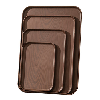 ถาดไม้ PP ทรงสี่เหลี่ยมสำหรับร้านค้าถาดเสิร์ฟขนาดใหญ่เกรดอาหารสำหรับคาเฟ่ของหวานชายามบ่ายคุก/อาหารวันหยุด