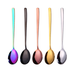 ช้อนคนกาแฟด้ามยาวทำจากสเตนเลสช้อน304สำหรับใช้ทำขนมโยเกิร์ตช้อนน้ำผึ้งเครื่องใช้บนโต๊ะอาหารสไตล์เกาหลี
