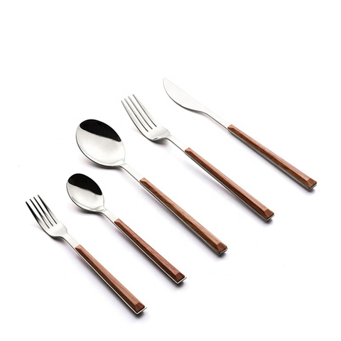 Modernes Besteckset ABS Kunststoff griff Holzmaserung Edelstahl Besteck für Hochzeiten Inklusive Löffel Gabeln Messer