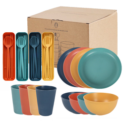 16 pièces incassable en plastique paille de blé vaisselle ensemble micro-ondes lave-vaisselle pour RV Camping en plein air jetable caractéristique stocké